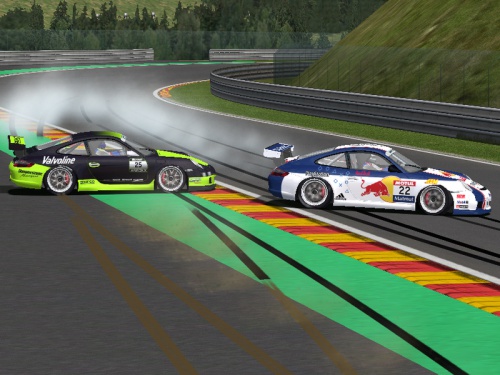 Na początku drugiego okrążenia Bartosz Bulawkin próbował odzyskać prowadzenie. Udało mu się to okrążenie później w pierwszym zakręcie, jednak nie przez czysty manewr wyprzedzania. Wjechał on w tył samochodu Dawida Kuszel obracając go. Kierowca Monster spadł na piąte miejsce, jednak musiał wycofać się na czwartym okrążeniu. Za nimi, Mateusz Kaczyński w tym samym miejscu wyprzedził Łukasza Lewczuk. Ten później musiał bronić się przed zaciekłymi atakami Artura Tymczyszyn. Za nimi czaił się Sebastian Cygler, który wyprzedził zawodnika DFP w zakręcie szesnastym. Ten jednak uderzył zawodnika RPB w tył samochodu w zakręcie Blanchimont. Oba samochody wpadły w poślizg, jednak udało im się uniknąć band. Stracili oni po jednej pozycji na rzecz Łukasza Dams. O ile Sebastian wyprzedził zawodnika AIR na ósmym okrążeniu, o tyle Artur pozostał za nim już do końca.