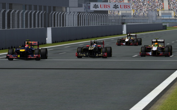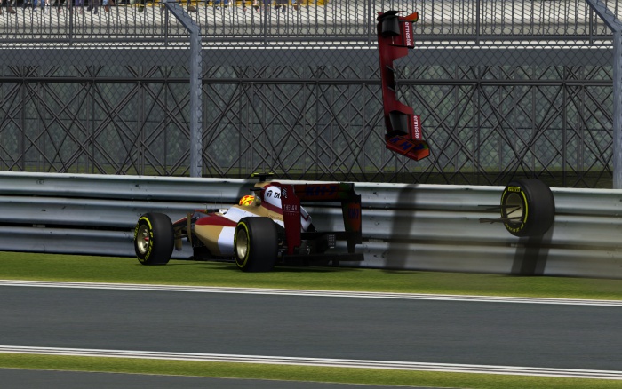 Na czwartą lokatę spadł Rafał Cupał, który uległ duetowi McLarena po własnych błędach. Jadący tuż za nim jego partner z zespołu - Łukasz Jasiński, na wskutek niedogrzanych opon poszerzył swój tor jazdy na początku drugiego sektora i oddał pozycję Adamowi Jurzyście, ten jednak zahamował jednak zbyt późno tracąc swój przedni spojler na tyle bolidu Rafała. W kierowcę Red Bulla wjechali kolejno Jasiński, Rogozik i Kaczyński, z czego skrzydła nie stracił tylko ten pierwszy. Tak więc zarówno kierowca Red Bulla, Mercedesa oraz Lotusa zmuszeni byli do przymusowej wizyty w pit stopie już na pierwszym okrążeniu.