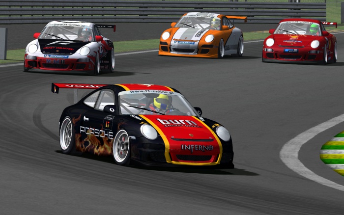 Z powodu wielu zawodników na starcie kierowcy obawiali się chaotycznego pierwszego okrążenia. Takie też ono było. Już na pierwszym zakręcie Adam Jurzysta wpadł w poślizg, jednak udało mu się opanować swój pojazd. Sebastian Kosmala uderzył w tył Nikodema Wiśniewskiego, czym uruchomił reakcję łańcuchową. Kierowcy starali się omijać zawodnika SET, jednak nie wszystkim się to udało. Uderzyli w niego kolejno Sebastian Cygler, Dawid Czepiela i Jakub Brański, który został dodatkowo potrącony przez Rafała Szostak. Ten zaś chwilę później zderzył się z powracającym na tor Dawidem Czepielą, przez co również wpadł w poślizg. Także i tu nie udało się go ominąć dwóm kierowcom: Radosławowi Cupał i Arturowi Tymczyszyn. Starty poniósł także Maciej Paruch, który po uderzeniu w bok pojazdu Artura Tymczyszyn obrócił swój samochód. Wszystkie te incydenty sprawiły, że na tor wyjechał Safety Car. A przynajmniej miał wyjechać, gdyż doszło do kuriozalnej sytuacji z jego udziałem. Kierowca samochodu bezpieczeństwa opuścił pit lane przed zgaśnięciem czerwonego światła, za co gra przyznała mu karę dyskwalifikacji. Przedwczesna zielona flaga na pewno zdziwiła wielu kierowców, na szczęście nie spowodowała zbyt wielkiego zamieszania.
