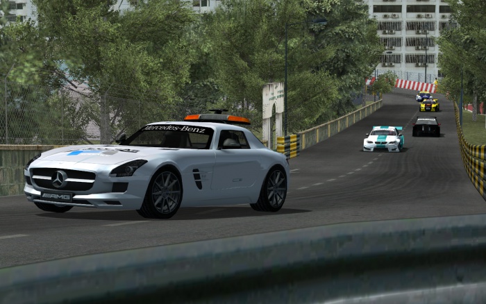 Pierwszą ofiarą band otaczających wyjątkowo ciasny tor Guia Circuit był walczący o 3. miejsce Mateusz Kaczyński. Samochód SHR został poważnie uszkodzony i musiał być usunięty z niebezpiecznego miejsca przez obsługę toru. Oznaczało to oczywiście wyjazd na tor samochodu bezpieczeństwa. 4 zawodników postanowiło wykorzystać okres neutralizacji na zmianę opon. Byli to Dawid Kuszel, Adam Jurzysta, Dawid Czepiela i Patryk Krutyj.