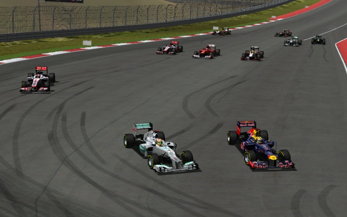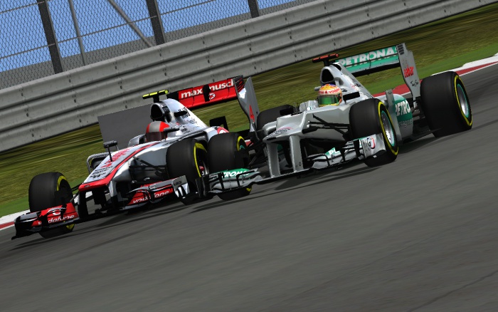 Na ósmym okrążeniu pierwsi zawodnicy zjeżdżają do alei serwisowej. Jako ostatni, swoich mechaników odwiedza Patryk Rogozik, co ma miejsce na jedenastym kółku. Opuszcza on aleję serwisową idealnie wyjeżdżając pomiędzy Radosławem Cupał i Łukaszem Jasińskim. Niestety, niedogrzane opony w bolidzie Mercedesa, powodują utratę panowania nad bolidem przez Patryka w pierwszym zakręcie. Kierowca HRT, jadący tuż za nim, zalicza kontakt z bokiem bolidu Mercedesa co skutkuje utratą przedniego skrzydła. Na zamieszaniu korzysta jadący na czwartej pozycji Patryk Krutyj, który automatycznie wskakuje na drugie miejsce.