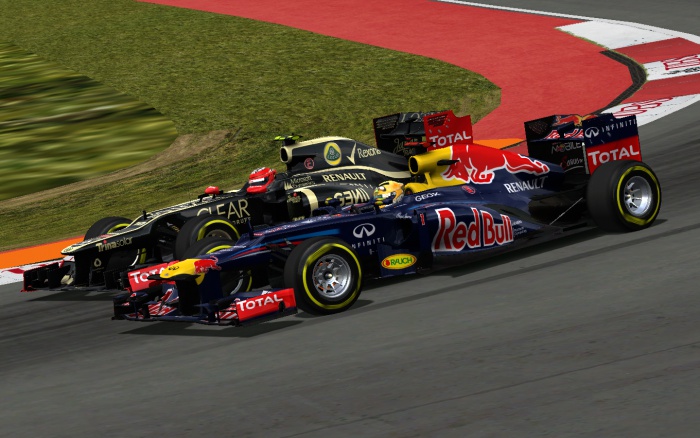 Na osiemnastym kółku Marcin Jędrowiak przebija oponę w swoim Caterhamie i zmuszony jest odwiedzić swoich mechaników. Skutkuje to jednak jego spadkiem na ostatnią lokatę. W tym samym czasie, dochodzi do walki o czwartą lokatę pomiędzy Adamem Jurzystą i Sebastianem Kosmalą. Kierowca Red Bulla wykonuje udany manewr na długiej prostej, lecz po chwili kierowca McLarena nieuważnie podchodzi do hamowania w trzecim sektorze, co skutkuje urwaniem spojlera i obróceniem bolidu Adama.