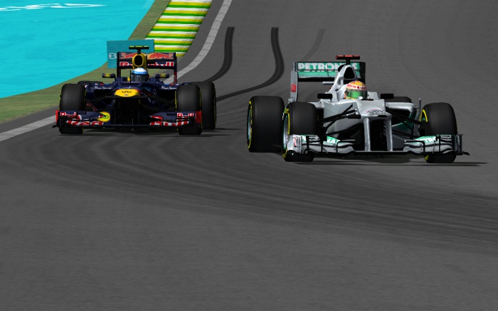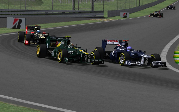 W okolicach dwudziestego czwartego okrążenia kierowcy ponownie zaczynają zjazdy do mechaników. Tym razem nie mają one większego wpływu na pozycje zawodników, a jedyną walkę toczą w tym czasie Cezary Kołcz oraz Mateusz Kaczyński znajdujący się kolejno na dziesiątej i jedenastej lokacie. Podczas tej walki dochodzi jednak do kontaktu między zawodnikami, co kończy się utratą spojlera w Williamsie Czarka. Zdesperowany kierowca postanawia wycofać się z udziału w wyścigu. Po chwili na skutek problemów technicznych, swój udział w GP Brazylii zakończy również Tomasz Bokuniewicz.