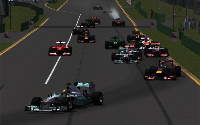 Trzy miesiące oczekiwania na nowy sezon i brak wyścigowej rywalizacji dały o sobie znać już na starcie. Adam Krzysztofiak i Daniel Turulski nie wytrzymali presji i zbyt wcześnie ruszyli z miejsca, przez co obaj musieli karnie przejechać przez aleję serwisową. Łukasz Jasiński także nie zaliczy tego startu do udanych. Jeszcze przed pierwszym zakrętem spadł z czwartej na dziewiątą pozycję. Kierowca Red Bull Racing zachował się bardzo dziwnie. Widząc, że rywale go mijają gwałtownie zmienił tor jazdy, co spowodowało kolizję z Radosławem Cupał. Reprezentant Saubera już na samym początku utracił szansę na dobry rezultat, gdyż musiał wymienić przednie skrzydło.