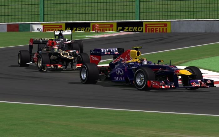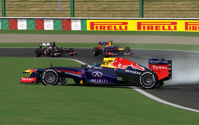 Po drugim pitstopie Sebastian Kosmala z Saubera powrócił na ósmą pozycję, a jedno okrążenie później Dawid Czepiela wrócił na tor jako szósty, około 2 - 3 sekundy za plecami swojego kolegi z zespołu i drugiego z kierowców Saubera, Radosława Cupał. Wtedy to Maciej Młynek popisał się wspaniałym manewrem, wyprzedził rywala po zewnętrznej na pierwszym wierzchołku szykany i jeszcze przed zmianą kierunku jazdy znalazł się przed jego bolidem o całą długość pojazdu. Trzeci kierowca klasyfikacji próbował zrewanżować się w pierwszym zakręcie toru Suzuka, lecz bezskutecznie. Tymczasem Dawid Czepiela wykorzystywał przewagę w postaci świeższych opon, a także walkę kierowców, i już jedno okrążenie później siedział już na ogonie Saubera. Przeprowadzenie manewru wyprzedzania okazało się jednak trudniejsze, tym bardziej że Radosław zrewanżował się Maćkowi i wrócił na 4. miejsce. Niedługo potem także Dawid Czepiela znalazł się przed swoim kolegą z zespołu. Pojedynek z Radosławem został zwieńczony na 21. okrążeniu. Najpierw oba bolidy zrównały się na prostej startowej, a potem w pierwszym zakręcie, po zewnętrznej, to Red Bull wysunął się przed Saubera. Od tego momentu Radosław mógł tylko obserwować tylne skrzydło rywala i patrzeć w lusterka, w obawie przed Maciejem Młynkiem. Ten jednak na 23. kółku uślizgnął tył na wyjściu z zakrętu Spoon i uderzył w bandę, tracąc spoiler. Konieczna była druga, nieplanowana wcześniej wizyta w boksie, lecz mimo to kierowca nie stracił swojego 6. miejsca. Przewaga nad pozostałą trójką była wystarczająco duża. Na tej samej rundzie toru doszło do kolizji podczas ataku Sebastiana Kosmali na Rafała Cupał. Kierowca Saubera zaczekał i oddał pozycję Rafałowi, po czym kilka zakrętów później, przed 130R, znalazł się przed bolidem Ferrari.