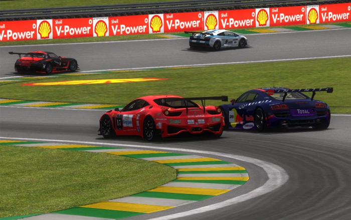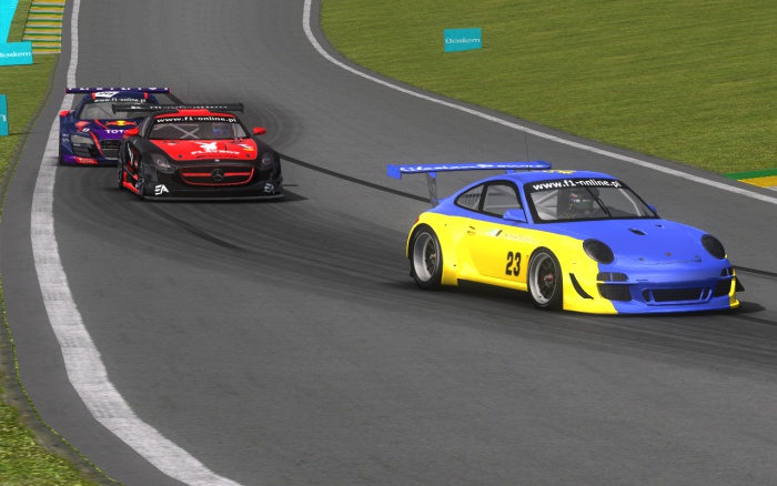 Po kontakcie w ostatnim zakręcie Patryk Krutyj spadł na 4. miejsce, lecz bardzo szybko skontrował Radosława Cupał. Jedno okrążenie później los swojego kolegi z Łady podzielił Łukasz Jasiński - w tym samym zakręcie, tylko że tym razem Patryk atakował po zewnętrznej. Na kolejnych okrążeniach kolejne pozycje zyskał Patryk Rogozik, a także jego zespołowy kolega - Łukasz Dams oraz Dawid Kuszel. Kiedy dwaj ostatni na 7. okrążeniu wyprzedzali Macieja Parucha, kierowca Light uderzył w Dawida, w skutek czego Porsche dokonało obrotu o 180 stopni. Nadjeżdżający Krzysztof Pieczykolan nie zdołał ominąć samochodu SR GT i uderzył w niego, co przebiło opony w obu samochodach. W tym samym czasie Patryk Krutyj atakował lidera wyścigu, Sebastiana Kosmalę. Udało mu się pokonać rywala w pierwszym zakręcie toru, po zewnętrznej, podobnie jak wcześniej Łukasza Jasińskiego. Szybka kontra kierowcy Lotosa pozwoliła wysunąć się naprzód na prostej, ale w czwartym zakręcie górą był kierowca DFP. Chwilę później Radosław Cupał wyprzedził swojego kolegę z zespołu i awansował na 3. miejsce, by pod koniec okrążenia zyskać jeszcze jedno oczko po błędzie Sebastiana Kosmali. Nie popisał się Dawid Płonka - ignorował niebieskie flagi, a kiedy obrócił swój samochód, Łukasz Dams był zbyt blisko by uniknąć kolizji. Pomimo urwanego zderzaka kierowca Ferrari nie zjechał na naprawę.