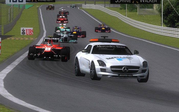 Dla zawodników, którzy odrabiali straty po problemach na początku wyścigu, szczęście uśmiechnęło się, gdy na 20 okrążeniu na torze pojawił się samochód bezpieczeństwa spowodowany błędem i rozbiciem bolidu przez Macieja Parucha. W czasie okresu neutralizacji większość kierowców zjechała po świeży i ostatni już komplet opon. Stawka została ściśnięta i trochę wymieszana, a po zjechaniu samochodu bezpieczeństwa wyścig zaczął się na nowo.