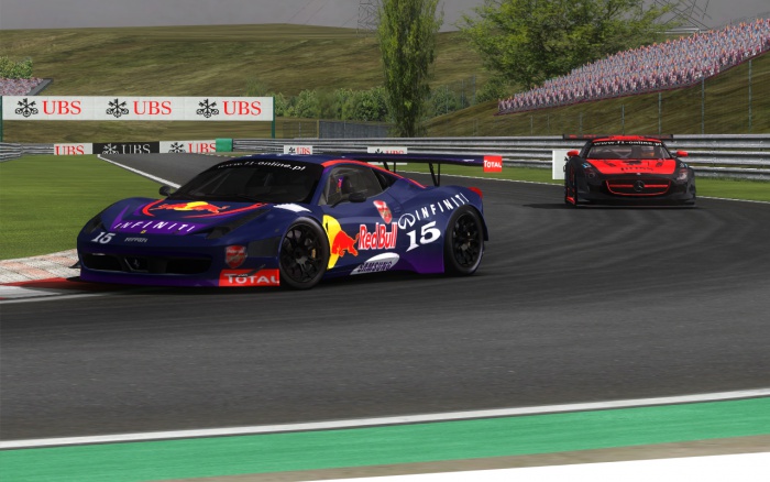 Rozczarowaniem może być wynik Red Bulla, gdyż obaj kierowcy nie ukończyli wyścigu. Obaj byli jednak zamieszani w incydent podczas pierwszego okrążenia. Dawid Czepiela podczas ataku na Radosława Cupał w czwartym zakręcie obrócił się na skutek kontaktu pomiędzy nimi. Jadący za nimi Marcel nie zdołał ominąć zespołowego kolegi, uderzył w niego i przebił oponę. Do tej pory samochód Dawida uniknął poważniejszych uszkodzeń, lecz chwilę później nadjechał Dominik Lewiński i uderzył w tył ferrari w barwach Red Bulla. Marcel Grudziński wycofał się po 6. okrążeniach, natomiast Dawid Czepiela kontynuował jazdę do 26. okrążenia, kiedy to przed zakrętem nr 6 wpadł z poślizg, wyleciał z toru i uderzył w bandę.
