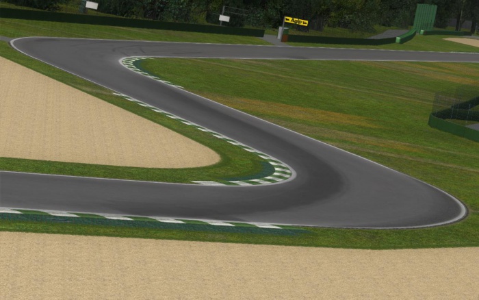Po pokonaniu prostej startowej przejeżdżamy z wciąż wciśniętym pedałem przepustnicy przez delikatny lewy łuk, który prowadzi nas do szykany Tamburello (dawniej szybki lewy zakręt) lewo-prawo i bardzo krótki odcinek prostej, po nim następuje łagodny lewy zakręt, gdzie kierowcy nie odejmują gazu. Łatwo dopuścić się tam ścięcia toru. Kończymy pierwszy sektor. Druga część toru rozpoczyna się od szykany Villeneuve lewo-prawo z szybkim wejściem i hamowaniem do drugiego, prawego wierzchołka. Następnie czeka nas lewy nawrót i jazda pod górę. Lekki skręt kierownicą w prawo przed zakrętem nr 8, krótkie hamowanie i jak najszybszy przejazd przez ten trudny lewy zakręt. Na wyjściu zjeżdżamy w dół, kolejny szybki prawy zakręt, po którym natychmiast następuje mocniejszy prawy. Do końca drugiego sektora zostaje już tylko wjazd pod górę na prostej. Prowadzi ona do ciasnej szykany prawo-lewo (Variante Alta), w tym miejscu kierowcy z pewnością będą starali się jak najgłębiej przyciąć tarki, jednocześnie nie opuszczając obrębu toru. Potem następuje zjazd w dół, ponownie delikatny skręt w prawo i mocne hamowanie do lewego zakrętu nr 14. Ważne jest by nie popełnić tam błędu, bowiem niemal natychmiast następuje kolejny skręt w lewo i kilka sekund jazdy z wciśniętym pedałem gazu. Do końca okrążenia pozostaje tylko prawy łuk i szykana lewo-prawo. Już na początku prostej startowej kierowcy przecinają linię mety, więc słabsze wyjście nie powinno znacząco pogorszyć czasu, jednak bardziej będzie "oddziaływać" już na rezultat następnego okrążenia.