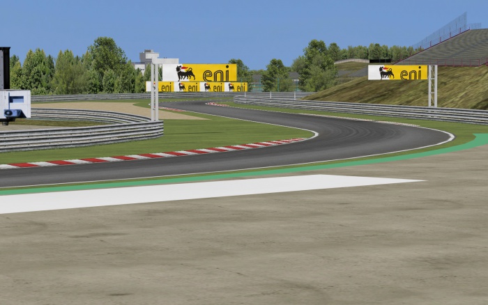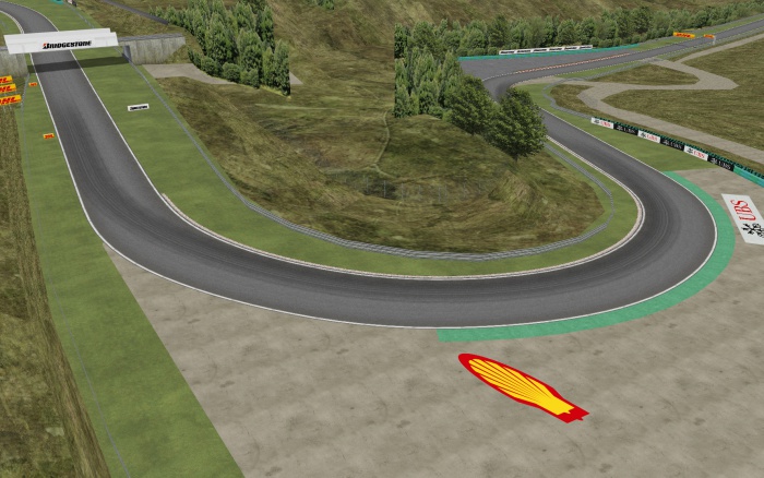 Okrążenie zaczynamy na długiej prostej. Dojeżdżamy do pierwszego zakrętu, który trochę schodzi w dół. Jest to charakterystyczny nawrót, ponieważ jest długi i szeroki. Zakręt nr 2 to również nawrót, tym razem lewoskrętny. Tutaj następuje ciągły spadek poziomu, położenia toru. Trzeci zakręt w prawo pokonujemy na pełnym gazie, gdzie czeka na nas mała prosta. Jest ona dosyć nietypowa, ponieważ do około połowy zakrętu jedziemy w dół, a później rozpoczyna się jazda pod górkę. Przed zakrętem numer cztery wykonujemy krótkie odbicie w prawo, po czym dojeżdżamy do lewego zakrętu. Na tej części toru należy bardzo uważać, gdyż każdy drobny błąd skutkuje wjechaniem w żwir. Następnie pokonujemy długi, dość szybki nawrót w prawo. Po krótkim prostym odcinku docieramy do szykany. Później nadchodzi podobna sekwencja: lewo-prawo-lewo-prawo. Następnie chwila odpoczynku dla kierowcy i po prostej pokonujemy zakręt w prawo i kawałeczek prostej. Potem lewy nawrót oraz ostatni zakręt w prawo i wyjeżdżamy na prostą startową.