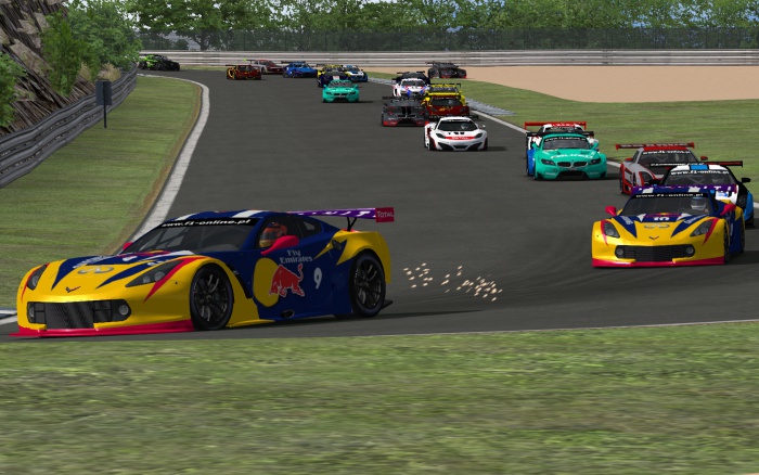 Na 13. okrążeniu doszło do kolejnego w tym sezonie dramatu Red Bulla. Zanosiło się na dublet, jednak Konrad Żerebiec nie ze swojej winy został znokautowany przez dublowanego Poncylisza. Kierowca ten zachował się dość szczeniacko, blokując Corvettę podczas dublowania. Na jakiekolwiek reakcję było za późno i Żerebiec uderzył w Nissana. Na domiar złego to nie był koniec problemów. Podczas zjazdu do boksów, Konrad przekroczył prędkość w alei serwisowej, co jeszcze bardziej dobiło zawodnika, który P2 miał praktycznie w garści. W międzyczasie Młynek odwiedzał boksy, a na tor powrócił za Krutyjem na P15.
