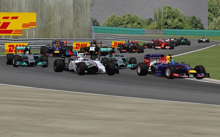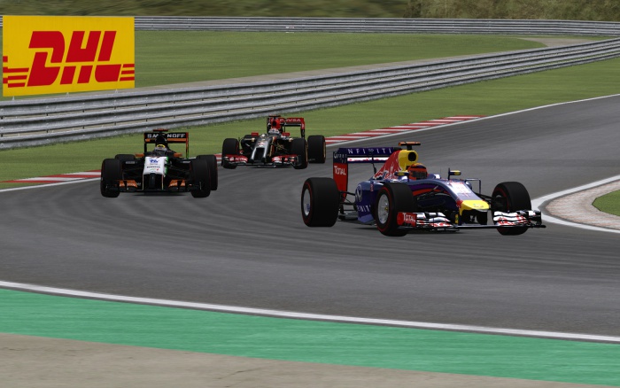 Marcel Pawiński (P1): Szalony wyścig i niespodziewany rezultat. Szczerze wątpiłem w to, że kiedy kolwiek uda mi się wygrać, a tym bardziej w tym sezonie. Co prawda pomogła mi w tym błędna strategia i pech Patryka. Wracając do wyścigu... Start był dobry bez przygód. Od raz postanowiłem napierać na Maćka, którego udało mi si wyprzedzić po 1. zakręcie. Następniew mmiarę stabilne tempo, które pozwoliło mi powiększyć swoją przewagę nad kierowca Red Bulla. Szczerze gdy zobaczyłem, że Maciej ubral pośrednia mieszankę na dzień dobry przyszło mi do głowy 'tyle z wygranej' jednak postanowiłem wydusić z super softów maks jaki mogłem zrobić. Udało powiększyć się przewagę do ok. 25 sekund po czym mogłem odetchnąć z ulgą, jednak Rafał prezentował znacznie lepsze tempo na wolniejszej mieszance. Ostatecznie nie zbliżył się wystarczająco. Wyjeżdżamy z Hungaroringu w najlepszym jak do tej pory nastroju. Kolejny przystanek to SPA - kolejny świetny tor. Liczymy na utrzymanie się w czołówce. Gratuluję Rafałowi i Mateuszowi podium.