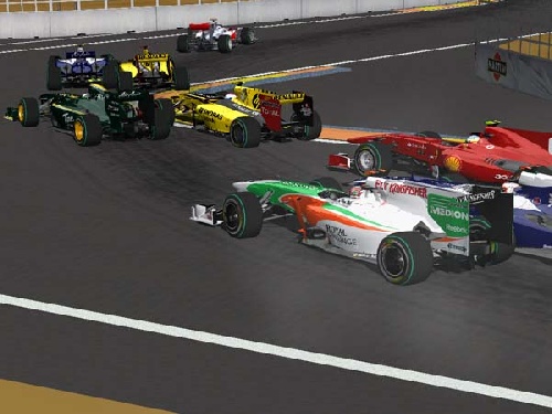 Start przebiegł dosyć spokojnie. Świetnie wykorzystał swój potencjał Patryk Rogozik (McLaren), który po pierwszych metrach był już na prowadzeniu wyprzedzając Dominika Glinkę (Williams). Podczas drugiego zakrętu doszło do małego starcia pomiędzy Dawidem Kowalem (Renault), a Patrykiem Krutyj z Lotus. Jednak kierowca teamu Lotus zdołał wyprowadzić swój bolid z opresji i jechać dalej na piątym miejscu. Z tyłu natomiast na Dawida wpadł Cezary Kołcz (Force India), spowodowało to spadek reprezentanta Renault na ostatnią pozycję w wyścigu o GP Europy.