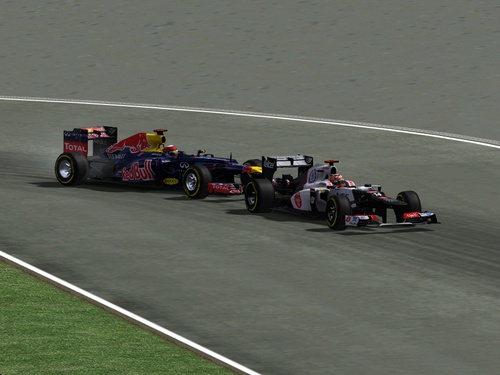 Start wyścigu przebiegł zaskakująco spokojnie. Oprócz kilku delikatnych kontaktów, na pierwszym okrążeniu nie doszło do poważniejszych kolizji. Znany z bardzo ostrożnej jazdy na początku wyścigów i tracenia pozycji na starcie Rafał Cupał i tym razem nikogo nie zaskoczył. Start w wykonaniu startującego z 4. miejsca kierowcy Ferrari był wręcz katastrofalny - po kilku zakrętach Rafał znalazł się na 10. pozycji. W tej fazie wyścigu nie popisał się także Mateusz Kaczyński z HRT, który z 6. spadł na 9. miejsce. Na pierwszym okrążeniu najwięcej zyskał natomiast jego kolega z zespołu, Radosław Cupał. Radosław awansował z 8. na 5. lokatę.
