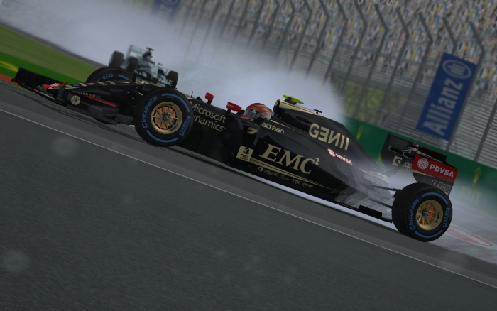 Słabe tempo na pierwszych okrążeniach miał Rafał Cupał. Już po trzech okrążeniach zdążył spaść ze świetnego 4. miejsca na 8 pozycje. Dobrze jechał Hamburg, który utrzymywał tempo Mercedesów. Z mozołem starał się odrabiać straty kolega Jacka - Adrian Babiński. Dobry wyścig jechał też Damian Wolkiewicz, który po raz pierwszy zasiadł za sterami Williamsa i awansował już na 7 miejsce. Świetnym manewrem na pierwszym stincie popisał się też Konrad Żerebiec, który w jednej szykanie, sprytnie ogrywając rywali, zdołał przebić się z 8 na 5 lokatę. W tym samym momencie ponownie zaczęło padać, co zwiastowało całkowicie deszczowe warunki podczas GP Kanady do samej mety. Okrążenia 5. i 6. były jednak bardzo szalone. Oprócz początku ulewy rozpoczęły się też przygody niektórych kierowców. Tuż przed rozpoczęciem opadów zaczęła się pojawiać sucha nitka toru, więc Maciej Młynek postanowił zaryzykować i zjechał po opony ultramiękkie przy okazji zderzając się z Babińskim, przez co stracił przednie skrzydło i czas. Młynek chcąc przechytrzyć rywali i zakładając opony typu slick musiał niestety ponownie zjechać po opony deszczowe już na następnym okrążeniu. Ponadto, dość duże zamieszanie spowodował kolega Maćka - Rafał Cupał, który popełnił duży błąd na dohamowaniu do nawrotu i staranował Konrada Żerebca. Reakcja łańcuchowa spowodowana kolizją dotknęła też Babińskiego. Wszyscy Ci kierowcy musieli odwiedzić swoich mechaników, a dodatkowo Rf. Cupał dostał karę stop&go, przez co wyjechał z alei bez wymiany przedniego skrzydła, skutkiem czego stracił kolejne cenne sekundy na ponowny zjazd po następnej pętli toru.
