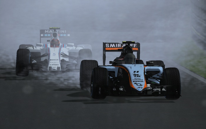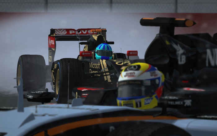 Jacek Hamburg pokazywał niezłe tempo w deszczu oddalając się od Pawińskiego, a zarazem coraz bardziej naciskając na lidera klasyfikacji generalnej - zbliżając się do niego już na niespełna 2 sekundy. Tymczasem po drodze wywiązały się dwie inne ciekawe walki - kierowców Force India z Damianem Wolkiewiczem o P6 oraz nieco dalej przed nimi o P4 Aleksego Mainusza z Maciejem Wysmulskim, którego opony zaczęły odczuwać trudy walki. Na 16 okrążeń przed metą do alei ponownie po nowy komplet "deszczówek" zjechał Adrian Babiński, który kolejny już raz w tym sezonie musiał wykonać pitstop więcej od swojego kolegi z zespołu. Na podobny ruch nieco później zdecydowali się też Dawid Czepiela i Maciej Młynek, który nie jechał dobrego wyścigu i przeżył do tego czasu już wiele przygód. Adrian, Dawid i Maciej to jedyni kierowcy z TOP 10 na mecie, którzy jechali strategią na więcej niż jeden zjazd.