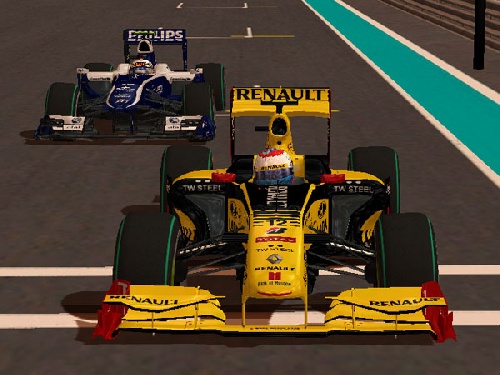 Kierowcy Renault i Williamsa szybko odjechali od reszty i toczyli pasjonujący bój o zwycięstwo. Niemal na każdym zakręcie Dominik Glinka zbliżał się do swojego przeciwnika. Kibice nie mogli usiedzieć na swoich miejscach, szefowie obu zespołów dopingowali swoich podopiecznych, którzy nieustannie walczyli o prowadzenie w wyścigu. Wkrótce obaj musieli zjechać po nowy komplet opon Bridgestone, mechanicy w skupieniu czekali na kierowców, aby dokonać błyskawicznej zmiany opon. Obaj zjeżdżają, jednak Cezary Kołcz zbyt późno hamuje i wylatuje ze zjazdu do pit lane, niczym Kimi Raikkonen podczas wyścigu na Nurburgringu w 2007 roku. Mechanicy Williamsa szybko uporali się ze zmianą zużytych opon i mistrz powrócił na tor. Czarek za drugim podejściem trafił do pit lane, opony zostały zmienione.