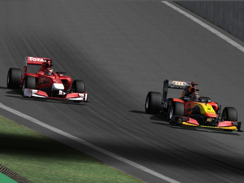 Parę zakrętów dalej podobny błąd do Adama popełnił Cezary Kołcz (Infinity), który natychmiast zjechał po wyminę opon. Rozpoczęły się zjazdy do boksów. Przy kolejnej akcji znów bohaterem była tarka. Karol Bednarczyk z Ferrari podczas walki z Łukaszem Dams (AIR) najeżdża na zielono żółtą część toru i obraca swój bolid. Reprezentant tramu AIR musi się ratować ucieczką na trawę.