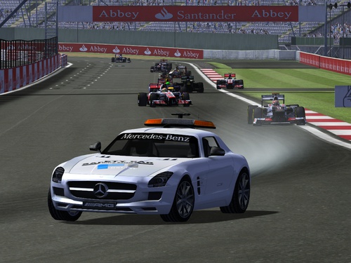 Pod sam koniec pierwszego okrążenia na przedostatnim zakręcie doszło do kolizji, którą spowodował Patryk Łucków. Kierowca Force India zbyt optymistycznie zahamował wjeżdżając jednocześnie w tyły bolidów Dawida Kuszela oraz Jakuba Garsteckiego. W efekcie tych wydarzeń Safety Car zmuszony był po raz pierwszy i ostatni wyjechać na tor. Podczas gdy z wyścigu był zmuszony wycofać się Dawid Kuszel, na wskutek wspomnianej kolizji, do kuriozalnej sytuacji doszło podczas neutralizacji. Najpierw Bartosz Bulawkin, próbując dogrzać opony rozbił swój bolid o bandy dawnej prostej startowej, tracąc spojler i przednie koło. Pod koniec tego samego okrążenia, drugi kierowca Saubera i lider wyścigu - Adam Jurzysta wpadł w poślizg i spadł w klasyfikacji na siódmą lokatę, a po chwili ponownie popełnił błąd i po raz kolejny stracił, tym razem kolejne trzy lokaty.