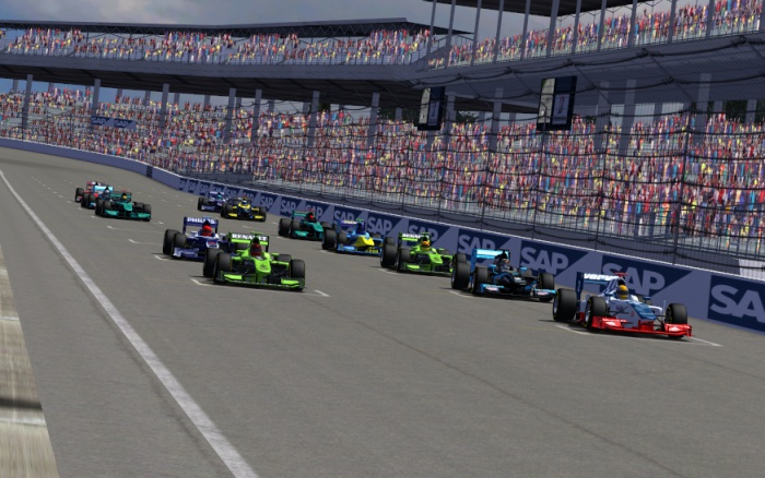 Na swoich pozycjach startowych nie ustawili się Krzysztof Pieczykolan i Krzysztof Woźniak. Zdecydowali, że rozpoczną rywalizację z alei serwisowej. Dzięki niewysokiemu betonowemu murkowi nie mogli oni dostrzec jak wyglądał start. Wprawdzie w pierwszym zakręcie doszło do kilku kontaktów, ale żaden z zawodników nie stracił przez nie zbyt dużo czasu. O pechu może powiedzieć tylko Rafał Szostak, który nieco opóźnił dohamowanie, przez co musiał się ratować przed uderzeniem w tylną część bolidu Szymona Kmiecika. Ściął mocno zakręt, czego efektem była kara „stop & go”.