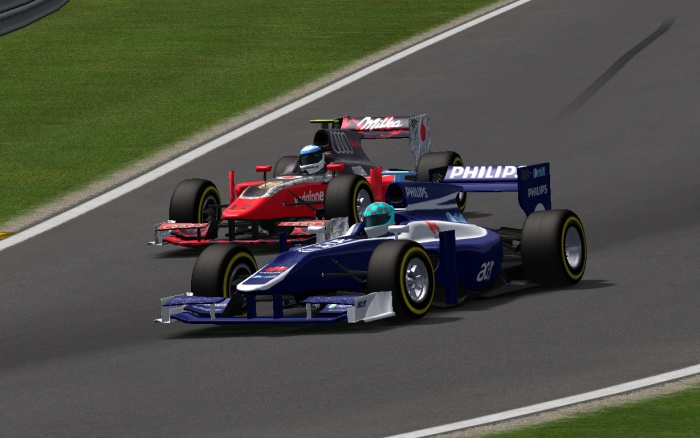 O ósme miejsce zażarcie walczyli kolejno: Łukasz Czerwiński, Grzegorz Paluch i Adrian Pińczuk. Paluch zbyt późno nacisnął hamulec przed zakrętem Les Combes. Uderzył lekko w Czerwińskiego, który musiał ratować się ścięciem zakrętu. Adrian widział swoją szansę. Jednak początkowo „otwarte drzwi” szybko zostały zamknięte przez Grzegorza, skutkiem czego była utrata kontroli przez Pińczuka. Jadący za nimi Bęgier ledwo minął tańczący na torze bolid rywala. Dwa okrążenia później nie miał tyle szczęścia. Reprezentant DFP stracił przednie skrzydło, ponieważ Grzegorz Paluch w niefrasobliwy sposób powrócił na tor po wcześniejszym ścięciu zakrętu.