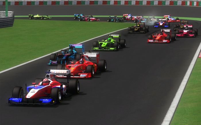 Kierowcy przejechali okrążenie formujące i ustawili się na odpowiednich polach startowych. Po zapaleniu się zielonego światła ruszyli. Czekać musiał tylko Błażej Młynek, który startował z alei serwisowej. Już na pierwszym zakręcie doszło do kontaktu między Szymonem Kmiecikiem i Krzysztofem Woźniakiem, w konsekwencji czego oboje wylądowali za torem, a kierowca zespołu Red Bull GP2 roztrzaskał bolid i musiał zakończyć wyścig.