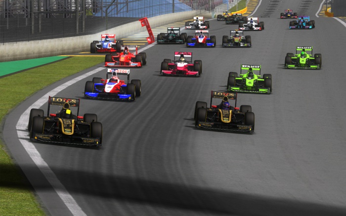 Po zapaleniu się zielonych świateł kierowcy ruszyli. Już przed pierwszym zakrętem doszło do kontaktu Dawida Płonka i Sebastiana Cyglera, w wyniku którego kierowca teamu Verva Racing odbił się od muru i stracił przedni spojler. Powrócił on na tor wprost pod koła rozpędzonego Błażeja Młynka, który nie zdążył wyhamować i w wyniku zderzenia uszkodził bolid. Dodatkowo w bolid Błażeja uderzył Jakub Kłos. Zrobił to na tyle mocno, że z bolidu zespołu Sauber GP2 odleciał tylny spojler i koło. Cezary Kołcz wystartował z alei serwisowej, a Łukasz Jasiński w wyniku błędu w pierwszym zakręcie spadł o cztery pozycje niżej. Paweł Andrzejewski utrzymał pozycję lidera.