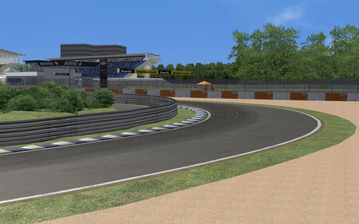 Okrążenie rozpoczynamy na długiej prostej startowej, która opada w dół przed hamowaniem do pierwszego zakrętu. Jest to dość szybki prawy, w którym bardzo łatwo przesadzić z prędkością i znaleźć się na poboczu. Zakręt nr 2 to delikatny prawy łuk, z którego wyjeżdżając trzeba już rozpocząć hamowanie do kolejnego prawego, tym razem wolnego zakrętu. Podjazd pod górkę, 90-stopniowy lewy z łagodnym wierzchołkiem, odcinek prostej i znów zjazd w dół i hamowanie, tym razem do lewego nawrotu. Teren lekko podnosi się do góry, zaś samochody pokonują lewy łuk, następnie bardzo szybki prawy (przy mniejszym docisku lub dużej ilości paliwa w baku trzeba tam odpuścić gaz bądź nawet przyhamować). Wolny zakręt w prawo, potem znów spadek terenu i podjazd pod górę, w międzyczasie kierowca pokonuje delikatny lewy zakręt, i hamuje na łuku do zakrętu nr 10, który przechodzi ostatecznie w 90-stopniowy prawy. Następnie zakręt w lewo bez odjęcia i znów pod górę, na szczycie lewy zakręt. Potem spokojny zjazd, bardzo długi zakręt 13, a chwilę po nim kolejny długi łuk, który prowadzi na prostą startową.