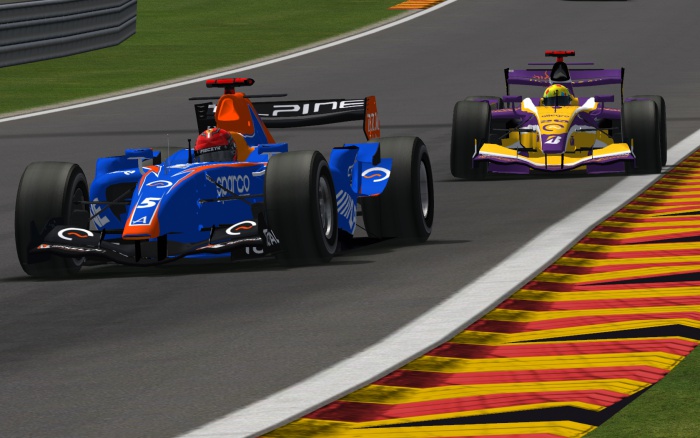 Marcel Pawiński (ART) po raz trzeci z rzędu okazał się najlepszym kierowcą, wygrywając na torze Spa-Francorchamps. Linię mety za niebieskim bolidem przeciął ponownie Jacek Hamburg (Williams), oraz Krzysztof Pieczykolan (ART).