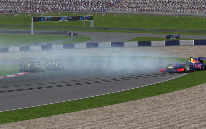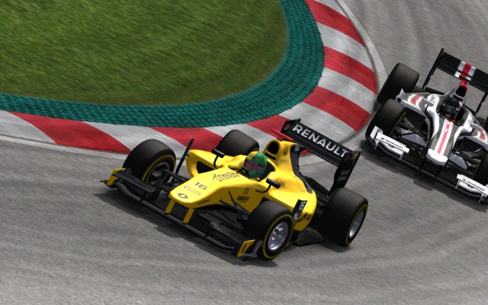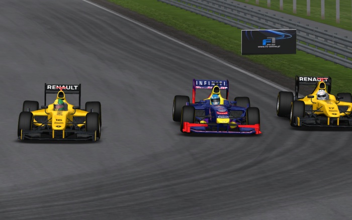 Do ostatni okrążeń trwała walka trzech pierwszych kierowców: Patryk Gerber (Red Bull GP2) oraz dwóch kierowców zespołu Renault Sport: Mateusz Kaczyński i Cezary Kołcz. Patryk Gerber wyprzedził prowadzącego Mateusz Kaczyńskiego i wysunął się na prowadzenie lecz w T4 Kaczyński uderzył w niego, kierowca Red Bulla wpadł w poślizg. Kaczyński odbił się od niego i wpadł na jadącego za nimi Cezarego Kołcza, który również wpadł w poślizg.