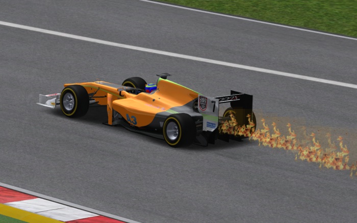 Wyścig bardzo udany jak na start z 15 pola.Start miałem dobry już po T1 byłem 12 lecz miałem kontakt z M.Majką i miałem uszkodzenia.Opony bardzo dobrze mi trzymały.Przed startem myślałem czy jechać na 1 lub 2 pit stopy.Zarykowałem i pojechałem na 1 pit lecz pod koniec wyścigu miałem walkę z D.Kuszel moje opony na 2-3 okr do końca wyścigu wyglądały tragicznie ponieważ mnie gonił K.Słomiński na ostatnim okr miałem z Kryspinem kontakt on zespinował a ja jehchałem dalej na ostatnim zakręcie przebiłem oponę i mnie wyprzedził D.Płonka.P7 to dobry wynik jak na start z 15 pola.Liczę na dobry wynik na Silverstone