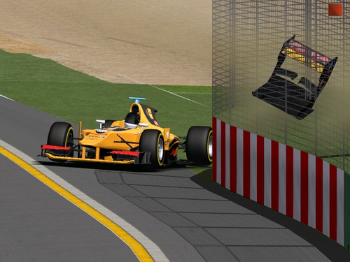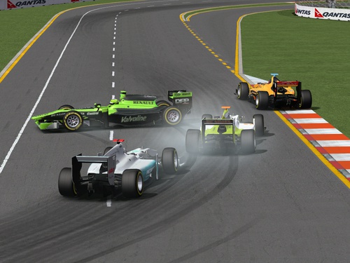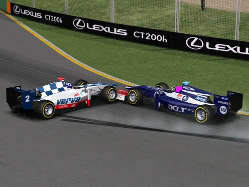 Na następnym okrążeniu jadący na 3. miejscu Radosław Cupał został wyprzedzony przez Krystiana Osińskiego. Maciej Młynek odzyskał jedną ze straconych wcześniej pozycji, wyprzedzając Igora Borzęckiego z AIR. Podczas piątego okrążenia trwała zacięta walka o 6. lokatę. W ostatnim sektorze toru Albert Park doszło do serii wydarzeń. Próba wyprzedzenia szóstego Cezarego Kołcza przez Kacpra Nogaj z Verva Racing zakończyła się kontaktem, w wyniku której Kacper spadł na 14. miejsce, a tuż po powrocie do jazdy, podczas obrony przed Igorem Borzęckim, doszło do kolejnej kolizji. Bolid AIR został wypchnięty poza tor i uderzył w bandę, uszkadzając przednie skrzydło. Igor z trudem zdołał dojechać do swoich mechaników. Po wyjeździe z alei zajął odległe 19. miejsce. W tym samym miejscu i czasie ucierpiał również Dawid Kuszel, który w wyniku kontaktu z Patrykiem Łucków z Polsat GP wykonał spina, spadając na 12. pozycję. W dodatku, Cezary Kołcz zrezygnował z pokonania przedostatniego zakrętu, zatrzymał się na poboczu rezygnując z dalszej jazdy w wyścigu.