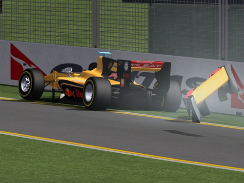 Podczas walki o 2. miejsce z Dawidem Czepielą, Szymon Prokopczak popełnił błąd. Bolid Polsatu GP uderzył w bandę, uszkadzając bolid na tyle poważnie, że zawodnik nie był w stanie kontynuować jazdy. Uformowała się pierwsza trójka, która do końca wyścigu nie uległa zmianie: Marek Jabłoński, Dawid Czepiela oraz Jakub Brański.