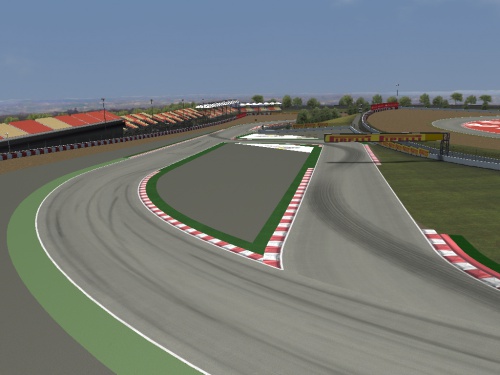 Pierwszy sektor toru to trzy szybkie zakręty. Po prostej startowej mamy zakręt Total, by po chwili wjechać w Abolafio, a potem po prostej wjechać w łukowatą trójkę. Bardziej kręty sektor drugi zaczynamy na dojeździe do zakrętu 4. Po tym zakręcie mamy prostą prowadzącą to pierwszego wolnego zakrętu, który oznaczony jest numerem 5. Następnie prosta i szybki zakręt 6. Do zakrętu TV3 odejmujemy gaz, aby później szybko wjechać w Placo-Saint Gobain. Po nim jest prosta, po której mamy lekkie odjęcie do dziewiątki, po której wjedziemy na drugą co do długości prostą toru. Jest tam dobre miejsce do przepuszczenia szybszego kierowcy, gdyż dublowany kierowca może przejechać przez fragment toru używany w krótszej konfiguracji. W połowie prostej rozpoczyna się ostatni, dosyć kręty, trzeci sektor. Pierwszy zakręt w tej sekcji, La Caixa jest dosyć trudny, ale jeżeli przestrzelimy punkt hamowania możemy wyjechać poza tor i spokojnie wrócić na asfalt. Zakręty 11 i 12 są pokonywane ze średnią prędkością. Kolejny zakręt, Europcar, prowadzi na prostą prowadzącą do Chicane RACC. Na końcu okrążenia jest szybkie Turisme de Catalunya.