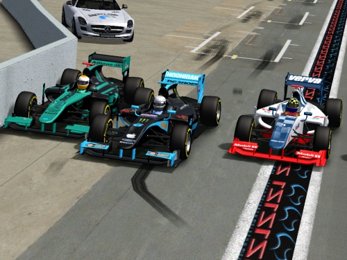 Na trzy okrążenia przed metą Brojak spadł na trzecie miejsce wyprzedzony przez wyżej wspomnianą dwójkę. Kierowcy Hoonigan Ford i Verva Racing GP2 mogli teraz skupić się tylko na sobie. Młynek szukał wszelkich sposobów, aby wyprzedzić Sebastiana i odnieść szóste z rzędu zwycięstwo. Jednak fantastycznie jechał Cygler, który bardzo mądrze bronił się przed atakami Maćka. Zdołał dowieźć pierwsze miejsce do końca odnosząc tym samym pierwsze zwycięstwo w naszej lidze i przerywając passę lidera mistrzostw. Trzeci, wyścig zakończył Grzegorz Brojak, którego strategia na jeden zjazd nie przyniosła zamierzonego rezultatu. Piątkę dopełnili Radosław Cupał i Szymon Prokopczak. Dobre słowo trzeba powiedzieć o Jakubie Kłosie i Adrianowi Homoncikowi. Obaj debiutanci świetnie się spisali. Pierwszy w stosunku do startu awansował o 12 pozycji, a drugi o 11.