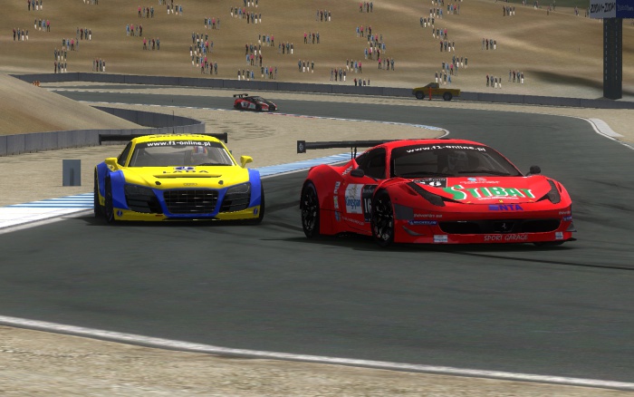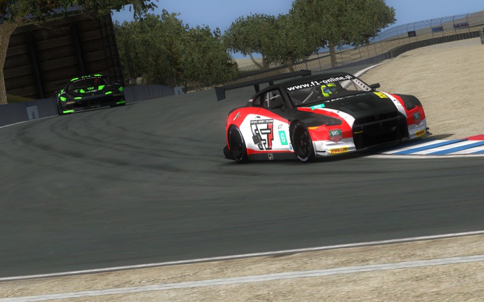 Kiedy zgasły czerwone światła, kierowcy ruszyli do walki w pierwszym wyścigu GT w lidze. Słaby start zaliczył Mateusz Bogusz. Kierowca FSP GT nie wykorzystał przewagi startu z Pole Position i na pierwszym okrążeniu znalazł się za Dawidem Kuszel. Miał on jednak blisko 60 minut, by odrobić stratę. W pierwszym zakręcie, a także w późniejszych sekcjach toru Laguna Seca nie doszło do żadnej potężnej kolizji, która zmusiłaby samochód bezpieczeństwa do wyjazdu z pitlane.