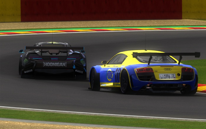 Na drugim okrążeniu doszło do kolejnej kolizji - Krzysztof Pieczykolan zbyt optymistycznie atakował z sekcji Les Combes, ścinając ostatni zakręt, by następnie odbić się od samochodu rywala i obrócić. Pojazd powoli toczył się na linię jazdy, aż w końcu Szymon Kmiecik nie zdołał go ominąć. Obaj kierowcy zmuszeni byli odwiedzić swoich mechaników. Pecha miał także Radosław Cupał. Po wyjściu z Eau Rouge Radosław Bogusz zahaczył jego samochód, co spowodowało utratę kontroli nad pojazdem, które zakończyło się uderzeniem w bandę. Bez zderzaków, z przebitą oponą, kierowca Łady powoli podążał do boksów. Sytuacja jego zespołu, który walczy przecież o mistrzostwo, skomplikowała się - dotychczas to dzięki regularnym zajmowaniu wysokich miejsc przez Łukasza Jasińskiego i Radosława Cupał zdobyli na tyle punktów, by znaleźć się przed FSP i DFP. Mimo powrotu na 18. pozycji ze sporą stratą do miejsc punktowanych, Cupał nie zrezygnował z jazdy. Wiedział że jeśli odpadnie kilku kierowców, będzie miał szanse zdobyć przynajmniej jeden, może dwa punkty, które mogą okazać się kluczowe w ostatecznej walce o mistrzostwo.